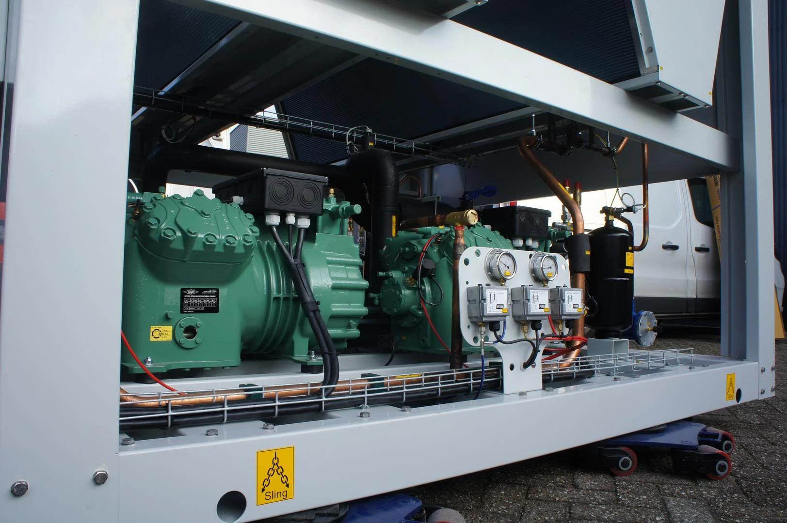 Omdat de kennis en kunde op het gebied van het natuurlijke koudemiddel R290 (propaan) in dit deel van de wereld nog beperkt is, heeft deze klant gekozen voor het koudemiddel R407C. Hoewel dit niet onze voorkeur heeft, willen we onze klanten toch ondersteunen en kunnen we daarom ook machines produceren met chemische koudemiddelen.
